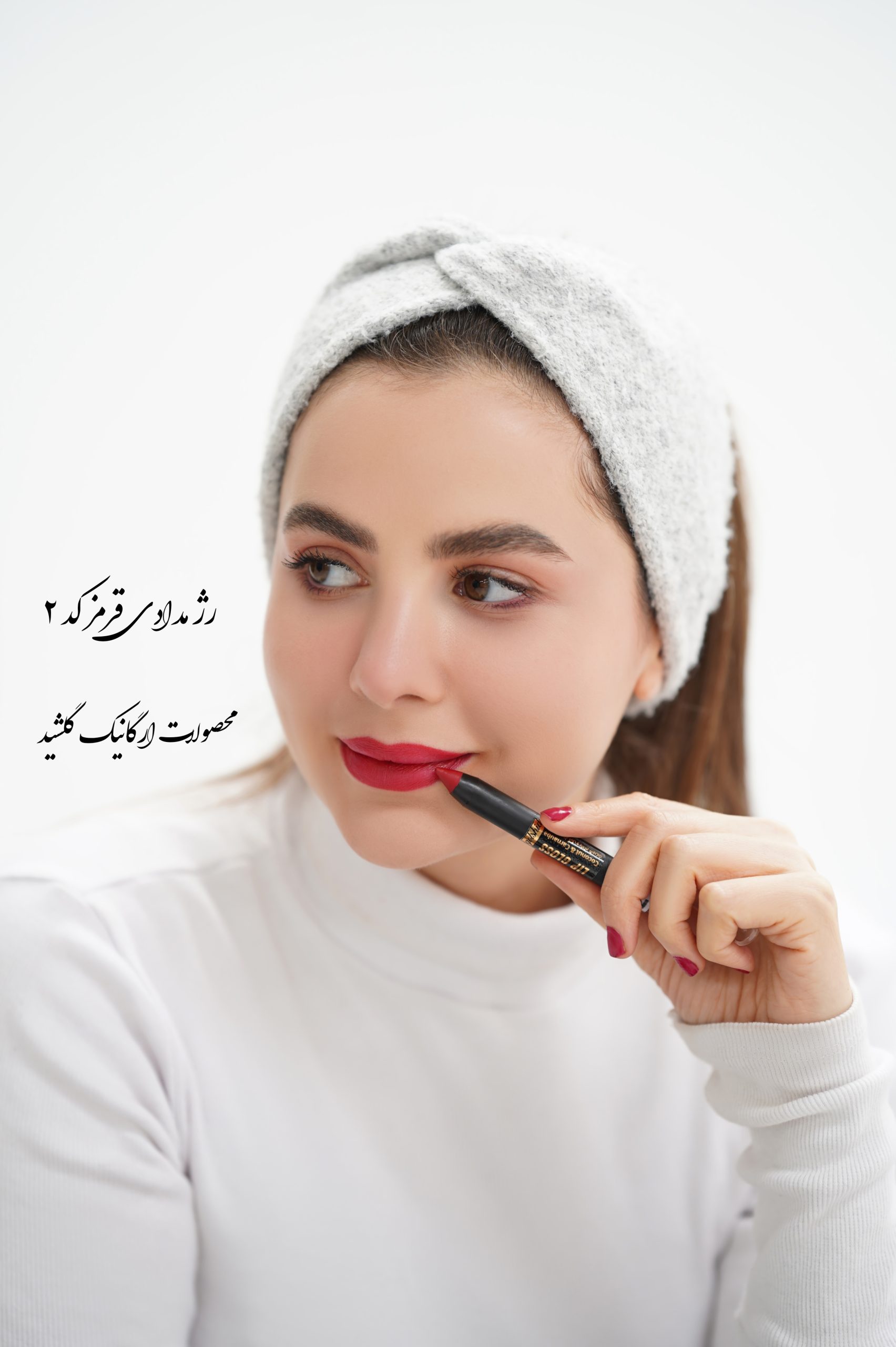 رژ مدادی ارگانیک گلشید کد 2 با تم رنگی قرمز سرخابی